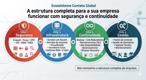 A Contato Global trabalha com um Ecossistema Completo de Segurança e Infraestrutura, onde tudo funciona em conjunto: